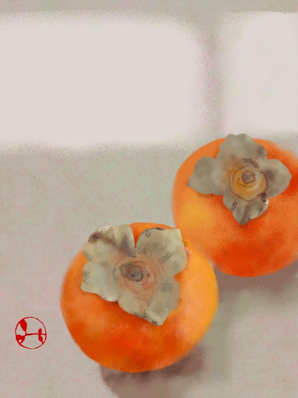 Я люблю современного художника Хидэтоси Мито. Некоторое время назад сохранила себе его чудесную картинку в надежде найти подходящее хайку — такое же солнечное, чтобы текст его светился изнутри, совсем как мякоть хурмы на этом рисунке.