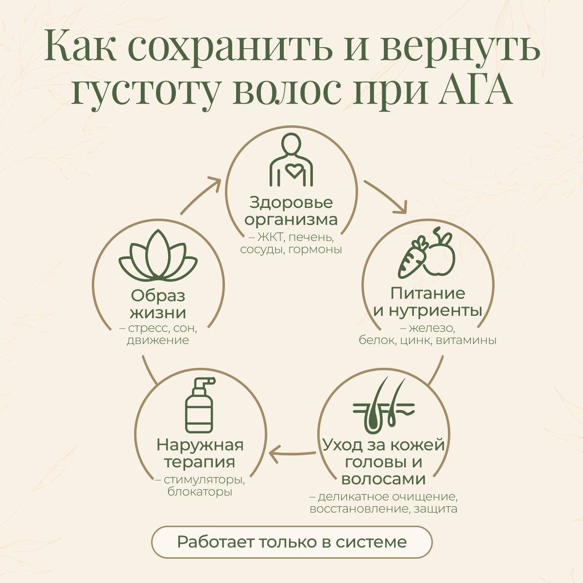 А теперь о главном. Наружная терапия важна, нужно, но как и любой другой тип выпадения, АГА требует комплексной стратегии, включающей: