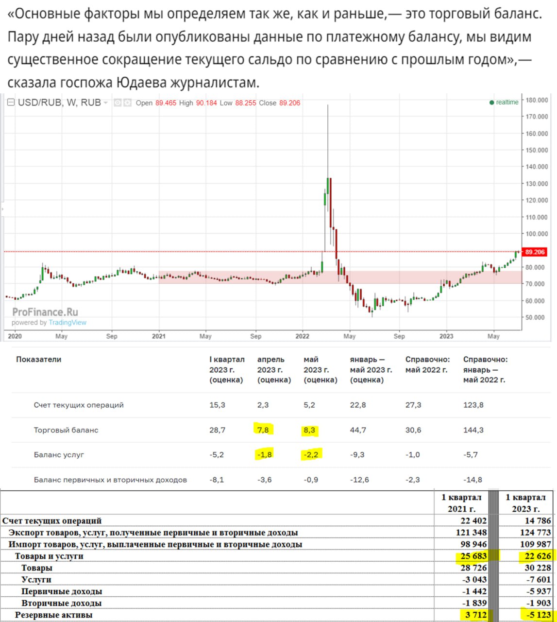 На самом деле заявление о том, что «Основные факторы как и раньше,— это торговый баланс» вполне отражает реальность, действительно так... но в 1 квартале, хотя наверно сравнивать правильнее не с аномальным и безумным 2022 годом, а скорее с 2021 годом.