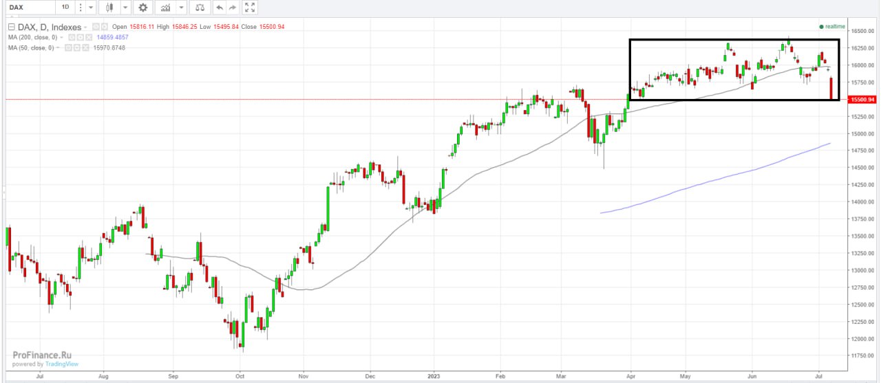 ​​Немецкий DAX сегодня снижается почти на 3%, опустившись до минимума с начала апреля (см. внизу).