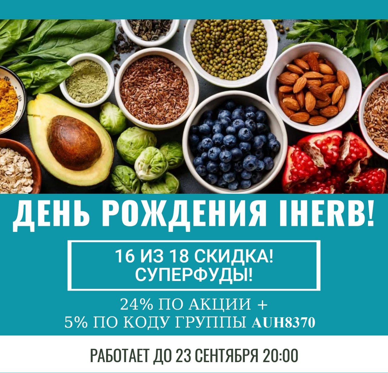 ⚡️24% по акции + 5% по коду группы AUH8370 на Суперфуды!