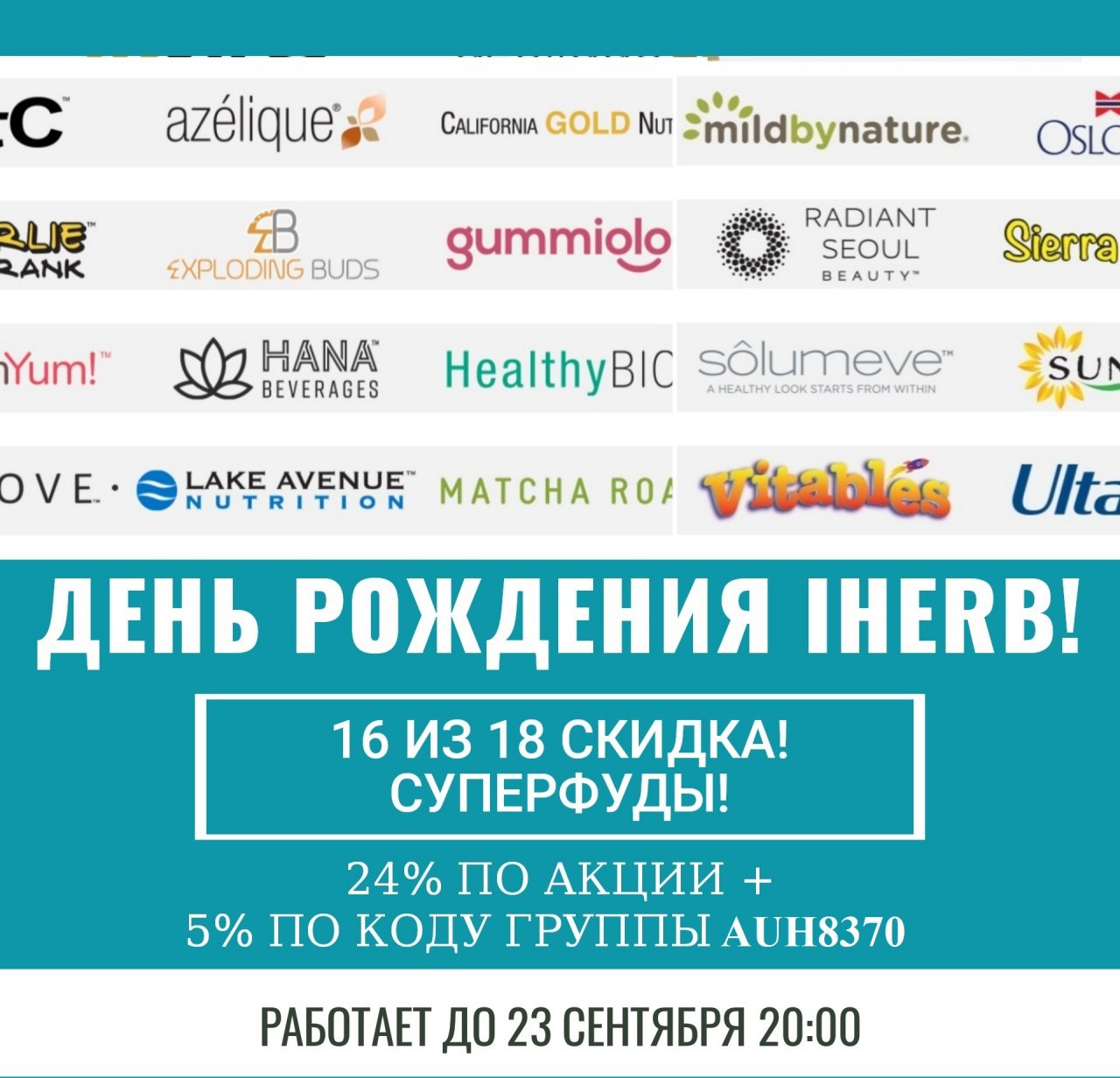 ⚡️24% по акции + 5% по коду группы AUH8370 на бренды iHerb!
