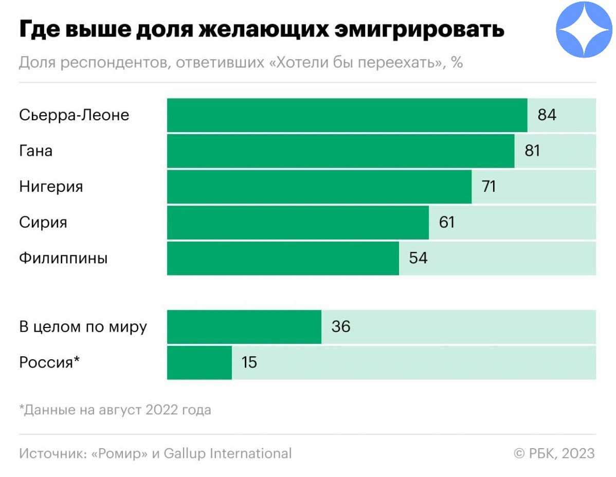 ➡️ 36% взрослого населения мира хотели бы эмигрировать в другую страну.