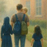 خلال اللعب، اقتربت مني امرأة وسألتني عن أمّهم، فأخبرتها أنها ذهبت للزيارة. ابتسمت وقالت لي: أنت أبٌ مثالي… ليت زوجي يخرج بابننا كما تفعل.