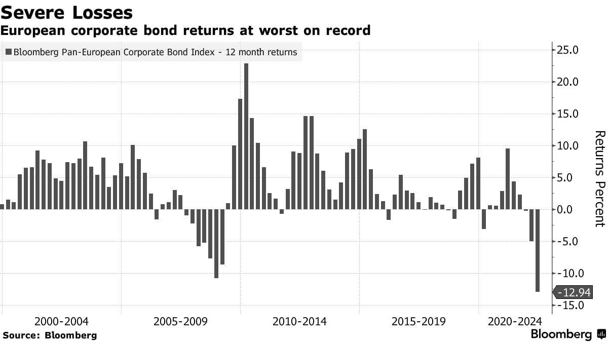 🇪🇺Европа переживает худший за последние десятилетия обвал корпоративных облигаций со времён 2008 года!