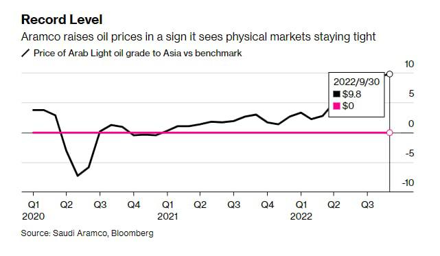 🇸🇦Saudi Aramco повышает цены на нефть сорта Arab Light на $0,5 за баррель в сентябре. Повышение произошло через день после небольшого увеличения добычи ОПЕК+.