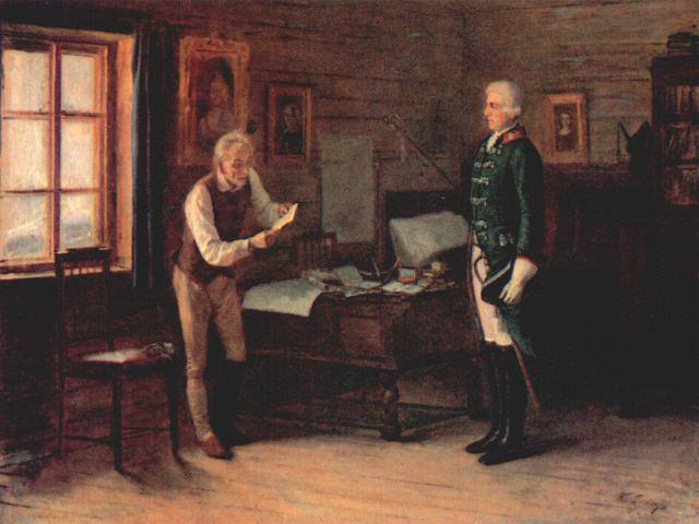 Суворов, получив рескрипт, облобызал его, прижал к ранам, отслужил в сельской церкви молебен и сразу двинулся в путь.