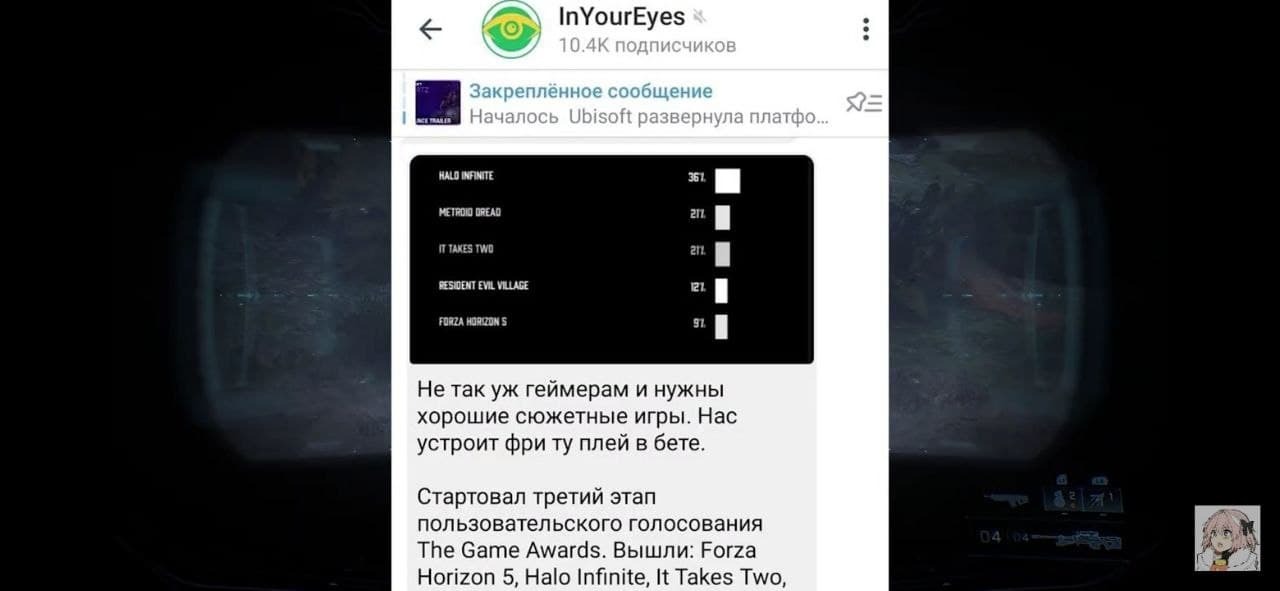 На меня тут обиделись одновременно «настоящие геймеры» и фанаты Halo. Какой-то блогер с небольшим каналом на 50 тысяч людей вставил в свой ролик сриншот из канала, и издевательским голосом зачитал его вслух. Молодой человек объясняет мою ошибку: «Игра на хайпе, ее все ждут, и по этому за нее голосуют. Все уже забыли про релизы прошедшего года». По его мнению, за голоса отвечают не геймеры, а платформа, которая предоставляет возможность голосовать за Halo. — ну, давайте тогда винить в шутингах продавцов оружия, а не тех, кто из него убивает людей.