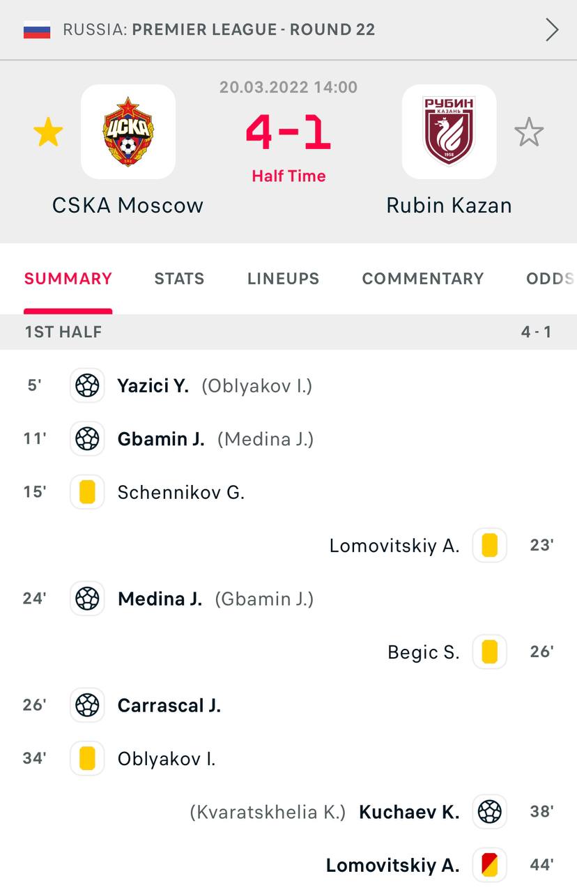 Последний раз в официальных матчах ЦСКА забивал 4 мяча 20 октября 2020 года тульскому «Арсеналу». А вот чтобы ЦСКА отгрузил четыре мяча в первом тайме… такого я не помню