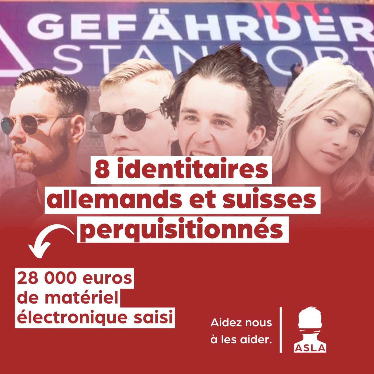 L’affaire date du mois de février et tous les protagonistes avaient été interpellés et leur matériel vidéographique saisi au moment des faits. Le 31 août soit plusieurs mois plus tard, six Allemands et deux Suisses ont vu leur domicile perquisitionné simultanément. L’ampleur de cette opération internationale n’a d’égale que son inutilité pour l’avancement de l’enquête. Elle a surtout été l’occasion de saisir davantage de matériels vidéographiques, appartenant parfois même aux proches des jeunes identitaires.