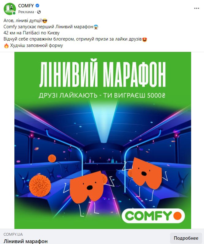 Или как вам новая рекламная кампания от Comfy в соц сетях?