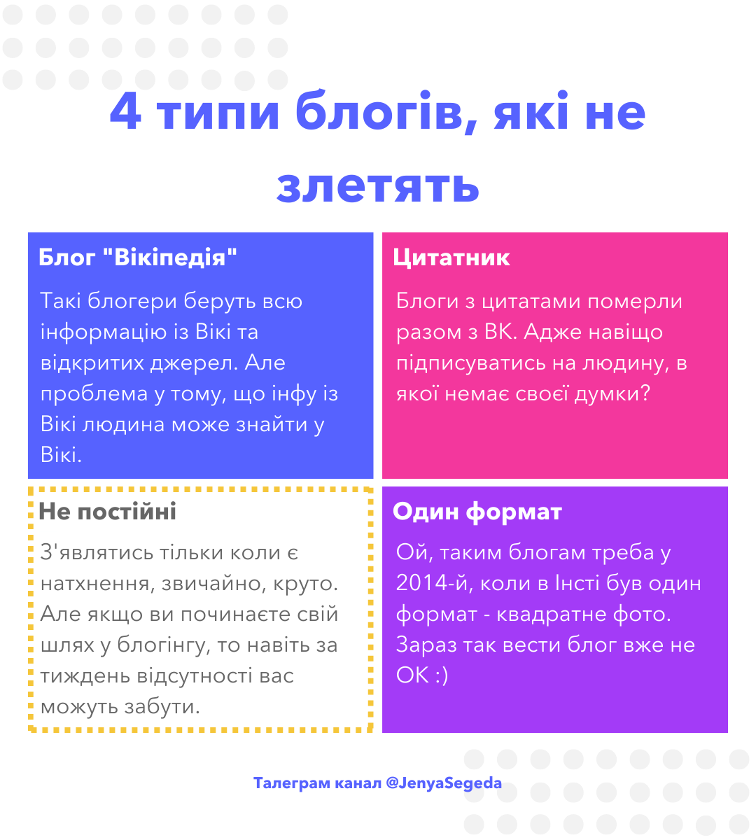 У мене є досвід блогінгу в Інсті й в Телеграм 🙄