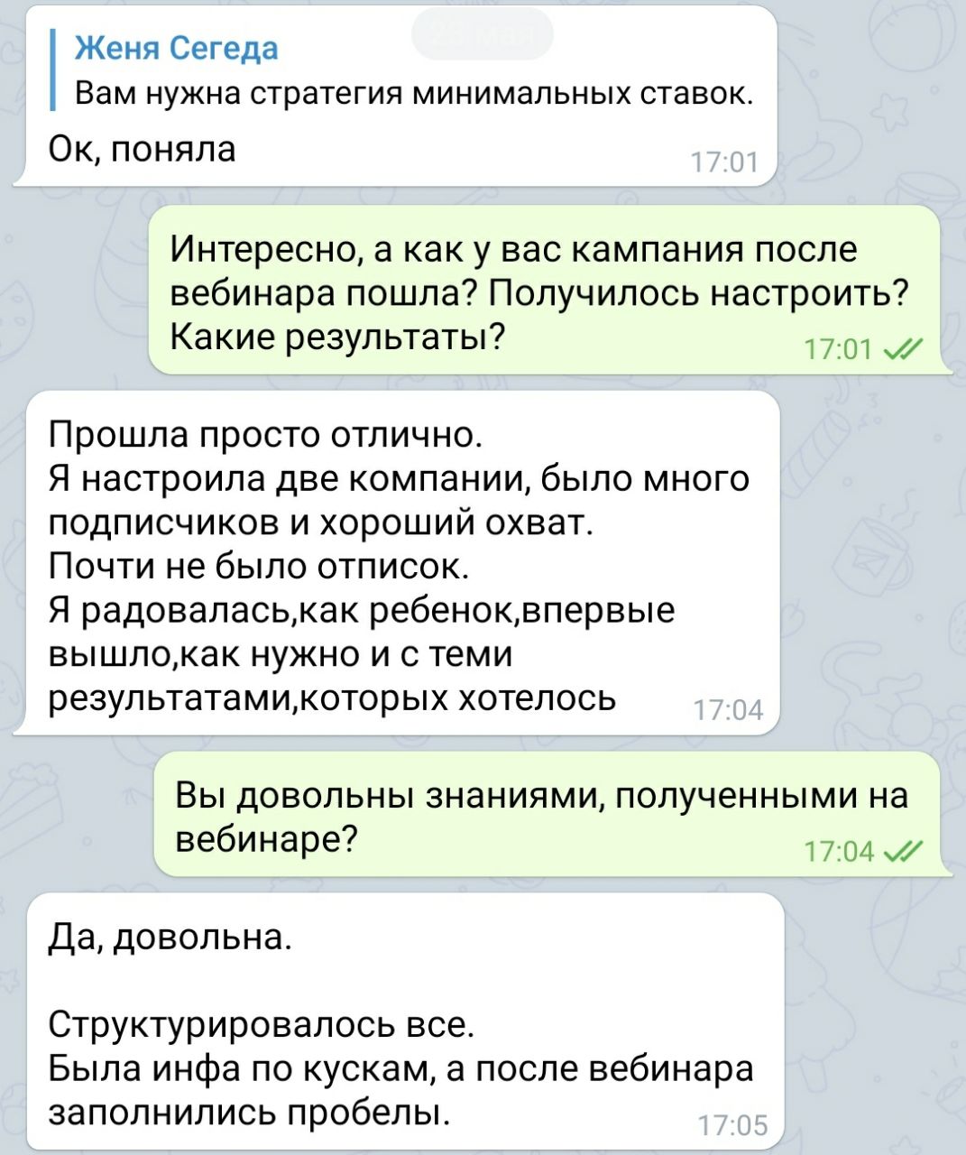 Сегодня мне написала девушка, которая проходила мой первый вебинар Таргетинг в Instagram 5 мая.