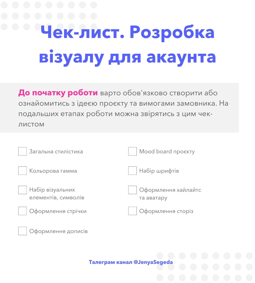 Чек-лист. Розробка візуалу для акаунту в соц. мережах