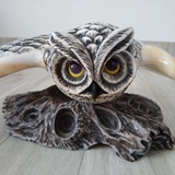 Сова белый ангидрит, пенёк кальцит, глазки и клюв стеатит. Высота 33см, в наличии.