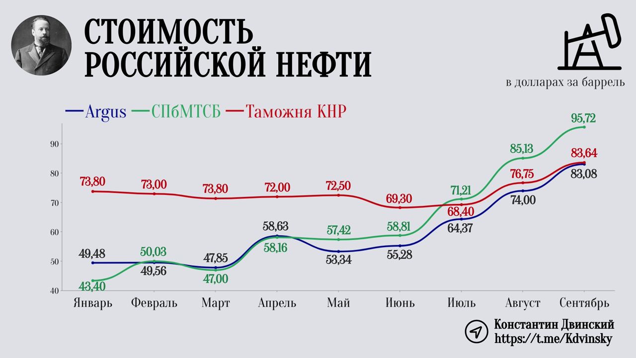 Цены - это и вовсе отдельная статья манипуляций. Ранее я данный вопрос разбирал более подробно. Не так давно снова был аналогичный вброс. Reuters выпустил материал следующего содержания: "в 2023 году Китай сэкономил 4,34 млрд долларов за счёт импорта российской нефти". Мол, санкции, дисконты, профит. Во-первых, данные китайской таможни (график ниже) показывают, что разница с той же Brent если и есть, то минимальная. А во-вторых, господа, вы по какой методологии снова считали? Сравнивали тёплое с мягким, т.е. поставки по трубе по долгосрочным контрактам (а мы довольно много поставляем в Китай по нефтепроводу ВСТО) и спотовые цены?