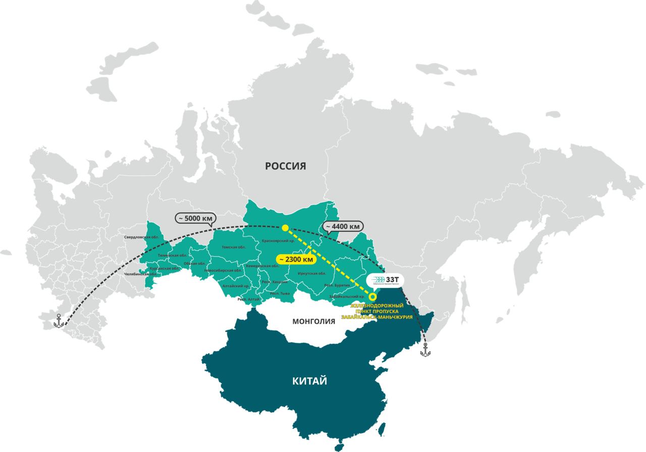В 2022 году стороны начали работать над созданием т.н. "Нового сухопутного зернового коридора". Были достигнуты договорённости о модернизации инфраструктуры, а также создании специализированного сухопутного зернового парка контейнеров для перевозки. В рамках данного процесса в сентябре прошлого года уже заработал самый крупный объект зерновой логистики в России - Забайкальский зерновой терминал мощностью 8 млн тонн продукции в год. Кроме того, в ноябре было открыто ж/д сообщение по посту через Амур. На карте ниже можно обратить внимание насколько сильно это упрощает логистику.