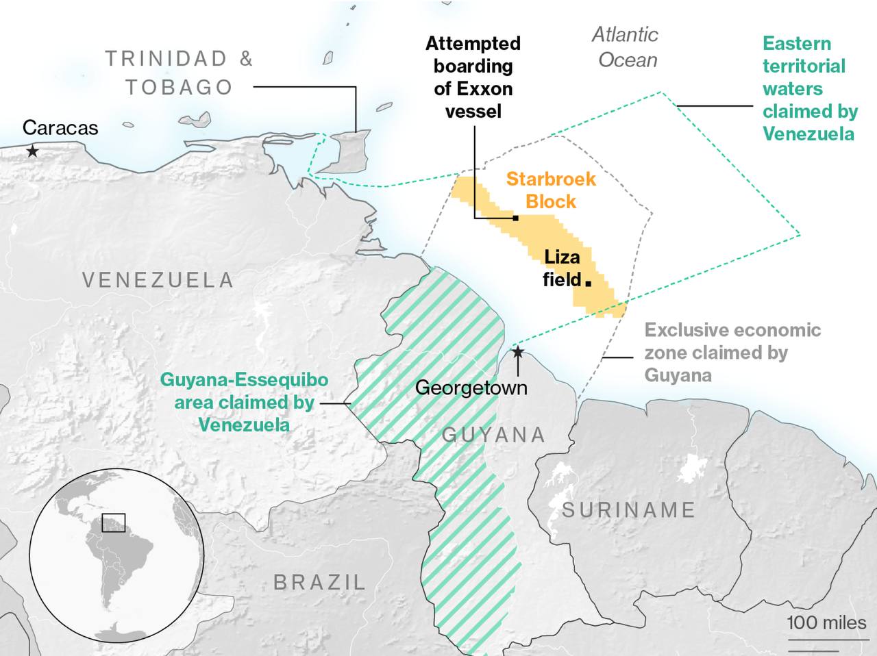 Маленький, но как оказалось весьма ценный сателлит Вашингтона - Гайана, после обнаружения запасов "чёрного золота", поспешила выдать ExxonMobil концессию на добычу нефти на шельфе, границы которого не делимитированы. Более того, для пущей надежности, США теперь планируют на спорной территории разместить свою военную базу, "милитаризовав" таким образом, спор между Венесуэлой и Гайаной. Впрочем, никто не удивлён.