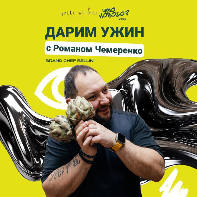 Это вау! Дарим 6 мест на ужин с Романом Чемеренко за chef-тейблом ресторана Hello Wine🍷 Для тебя и твоей компании из 5 друзей Роман приготовит особенный сет по мотивам его путешествия в Корею.