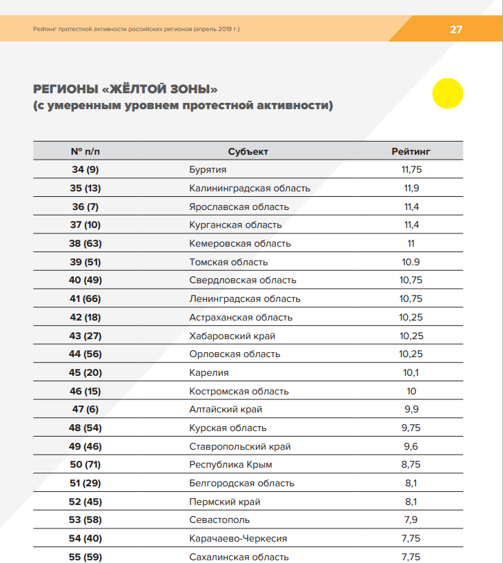Институт региональной экспертизы подготовил рейтинг протестной активности за апрель. В Кемеровской области вновь растет протестная активность. По итогам месяца Кузбасс занимает 38 место и находится в «желтой зоне» (с умеренным уровнем протестной активности).
