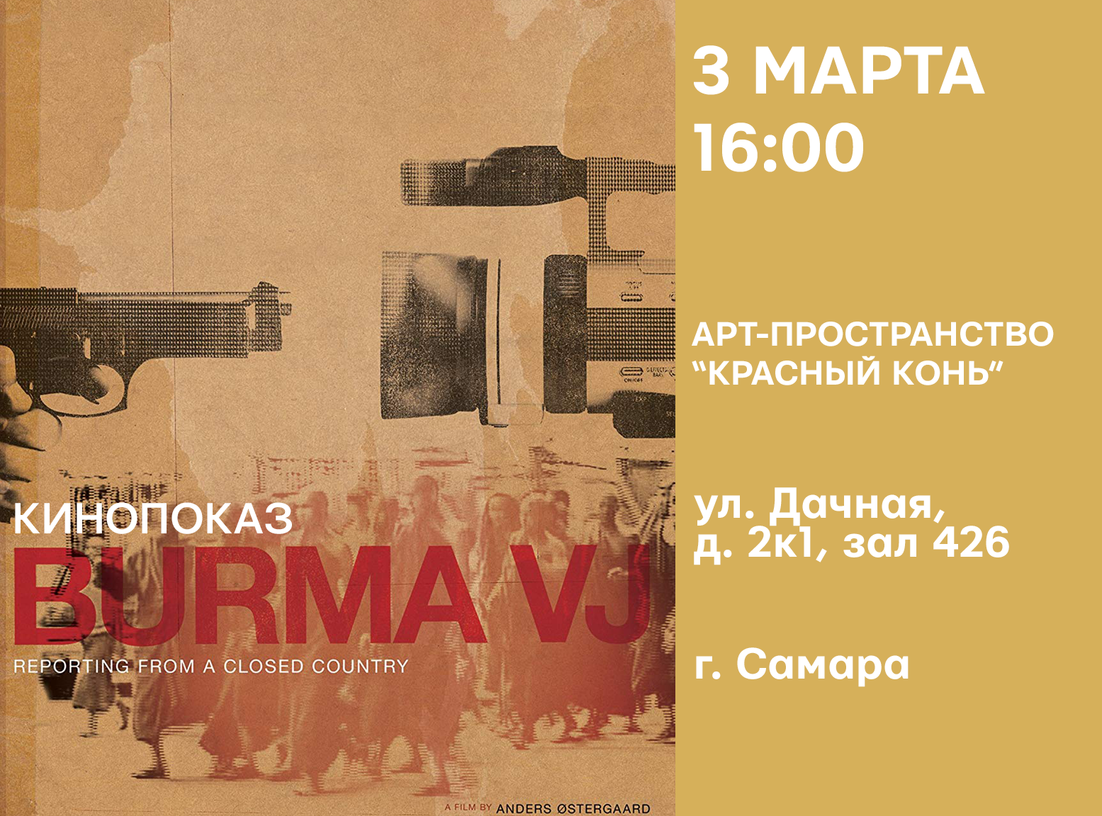 3 марта в Самаре прошел кинопоказ фильма «Бирманский видеорепортер», организованный нашим отделением. Фильм воссоздает историю неудавшейся ненасильственной революции в Мьянме в 2007 году через видеоматериалы, собранные усилиями независимой группы журналистов «Демократический голос Бирмы». После кинопоказа состоятелось обстоятельное обсуждение фильма, плавно перешедшее в дискуссию о роли гражданской журналистики и перспективах ненасильственного протеста в России. Со вступительным словом перед зрителями выступил Алексей Дыдочкин, член партии из города Тольятти. Киноклуб посетили 24 зрителя, зал был рассчитан на 30 человек.