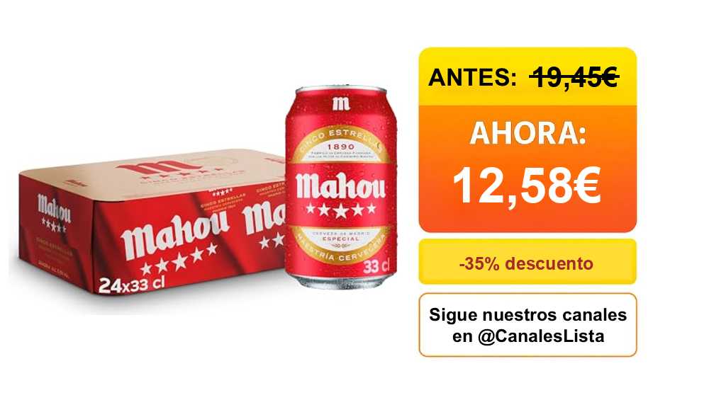 ππ Mahou 5 Estrellas, Pack de 24 Latas x 33 cl, Cerveza Especial Dorada Lager, Sabor 5 Estrellas, 5,5% Volumen de Alcoholπ #Amazon