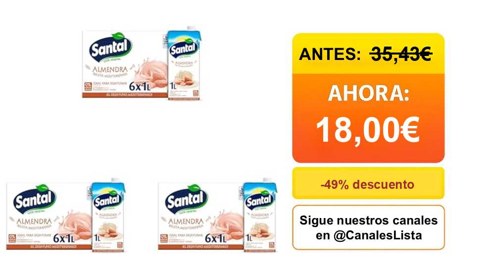ππ Bebida vegetal Santal Almendra sin azΓΊcar aΓ±adido brik 1L β Caja de 6 litros (Paquete de 3)π #Amazon