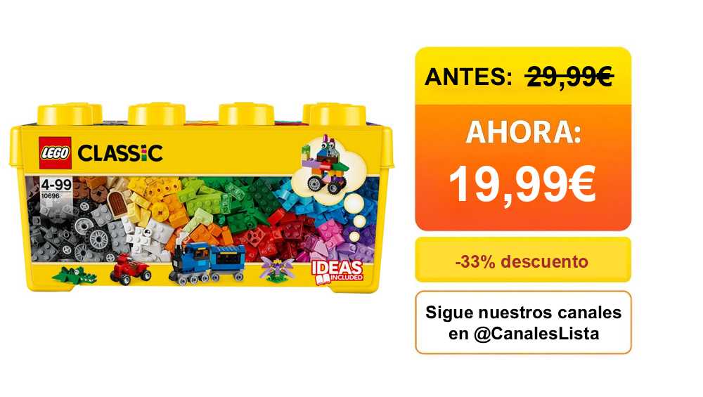 ππ LEGO 10696 Classic Caja de Ladrillos Mediana Base Verde, Coches y Animales de Juguete (484 piezas)π #Miravia