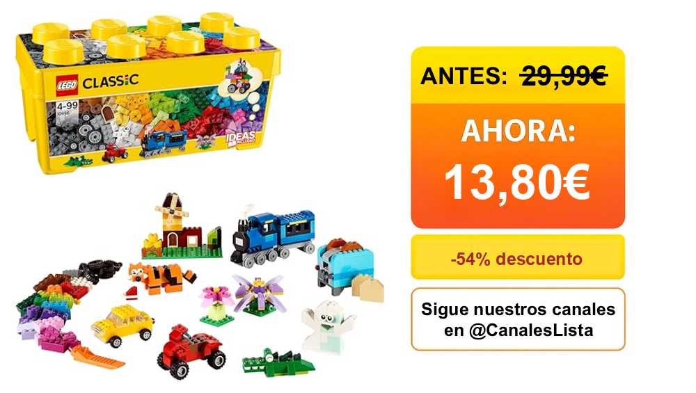 📍🎁 LEGO 10696 Classic Caja de Ladrillos Creativos Mediana con Base Verde, Coches y Animales🎈 #Amazon