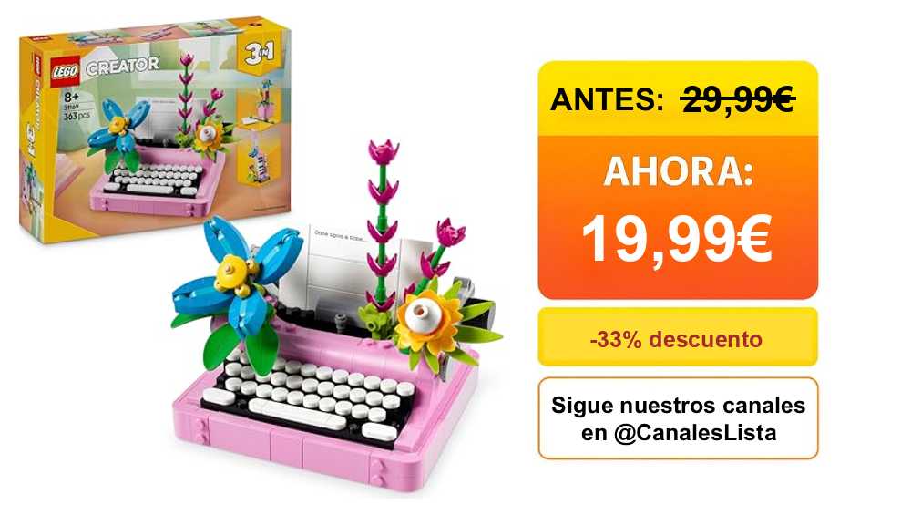 ππ LEGO Creator 3 en 1 MΓ‘quina de Escribir con Flores de Juguete - Transformable en Teclado Musical Keytar o Maceta con BolΓgrafo y Cuaderno - 31169π #Amazon