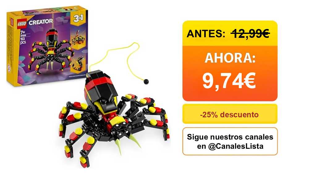 📍🎁 LEGO Creator 3 en 1 Fauna Salvaje: Araña Misteriosa, Set de Construcción Transformable en Serpiente 31159🎈 #Amazon