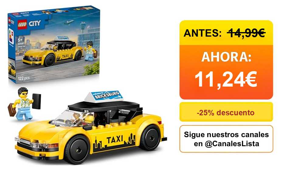 ππ LEGO City Taxi Amarillo de Juguete - Maqueta de Coche ElΓ©ctrico con Techo Desmontable y 2 Minifiguras - 60487π #Amazon