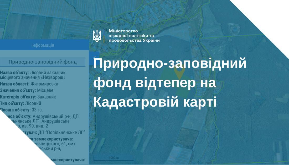 Кадастрова карта поповнилася шаром “Природно-заповідний фонд” — дані про об’єкти з природоохоронним статусом, загальною площею понад 4,28 млн га. Зокрема доступні відомості про площу, межі об’єкту, його користувача, розташування тощо.