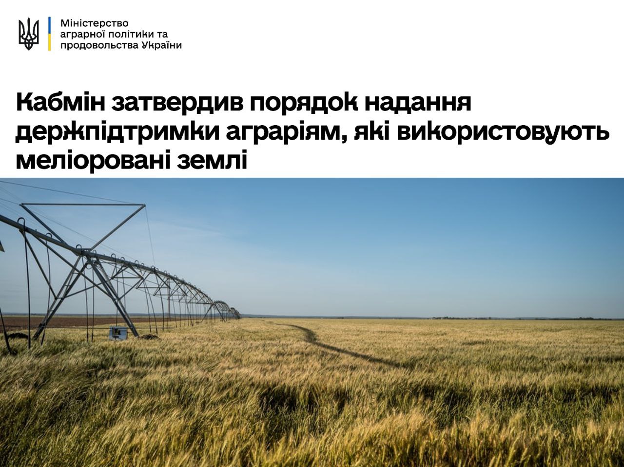 Державна політика й надалі буде сфокусована на підтримці аграріїв, які реконструюють наявні або будують нові зрошувальні системи. Адже це значно підвищує ефективність нашого сільського господарства в умовах глобальних змін клімату. Площі меліорованих земель мають збільшуватися!