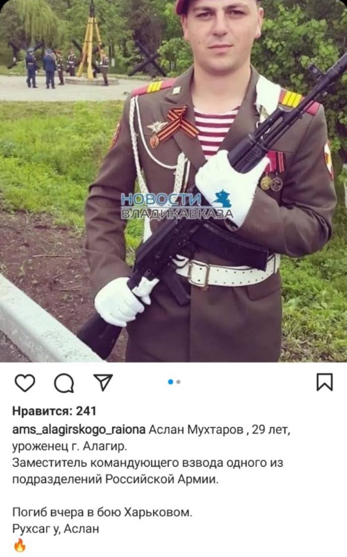 «Обладатель крапового берета, отзывчивый отличный парень» Аслан Мухтаров 29 лет из Алагира (Северная Осетия) бросил жену и ребёнка и поехал в Харьков убивать украинцев. Конец немного предсказуем