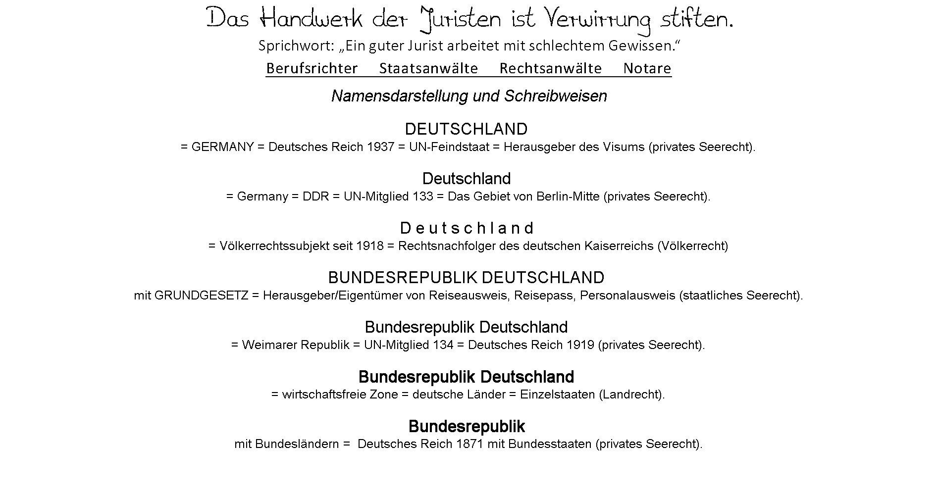 Die natürlichen Personen (Inhaber) hinter den juristischen Personen "Deutschland" (DDR/Berlin Mitte) und "DEUTSCHLAND" (UN-Feindstaat) finanzieren globalen, internationalen und nationalen Terrorismus und halten als Berufsrichter und Juristen den weltweiten juristischen Kriegszustand aufrecht.