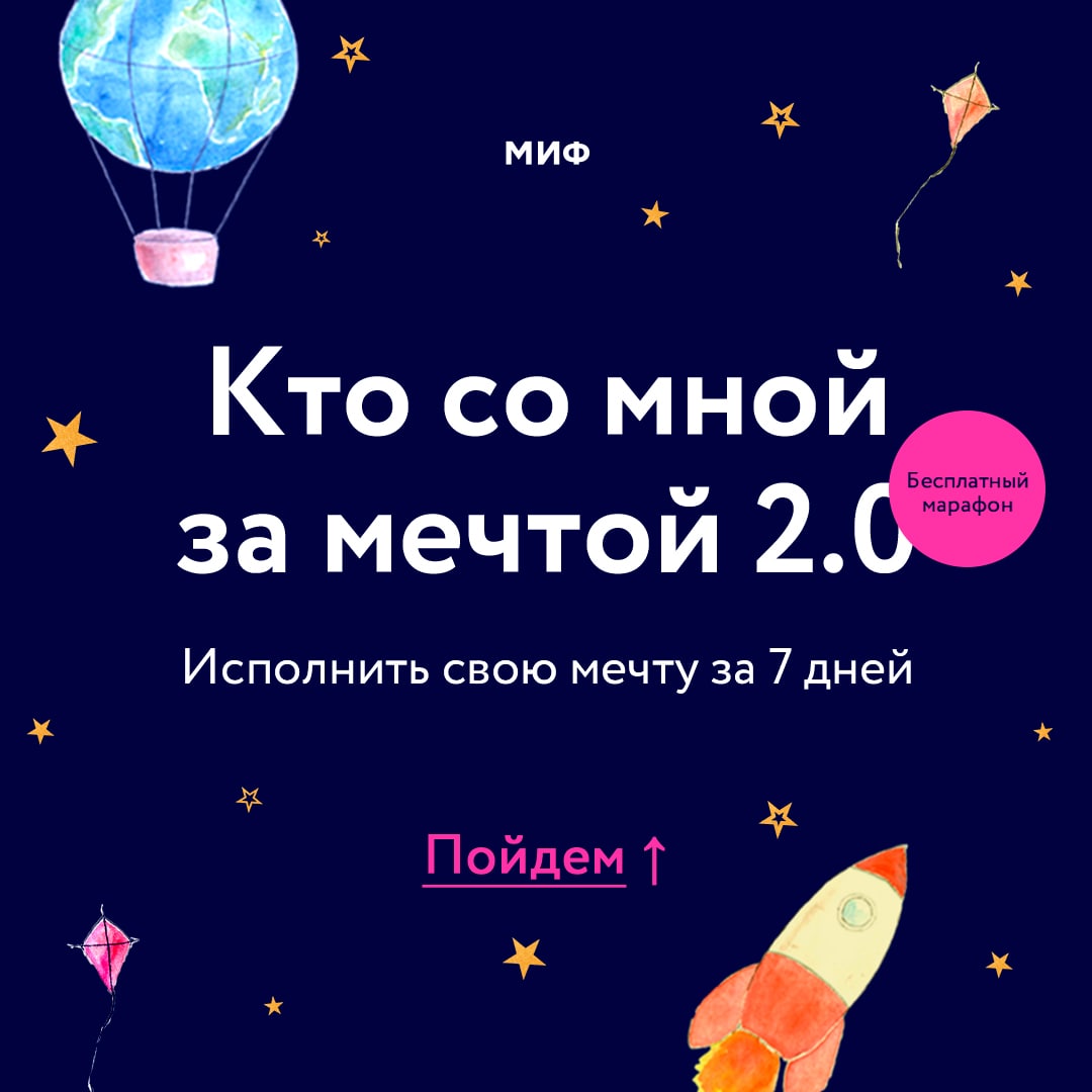 Кстати, мы запускаем марафон второй раз. В первый — сотни людей решились на исполнение мечты. Мы так этому радовались! Наши читатели изучали языки, садились на шпагаты, начинали свои бизнесы. Сделали самое важное — первый шаг по направлению к тому, о чем грезили.