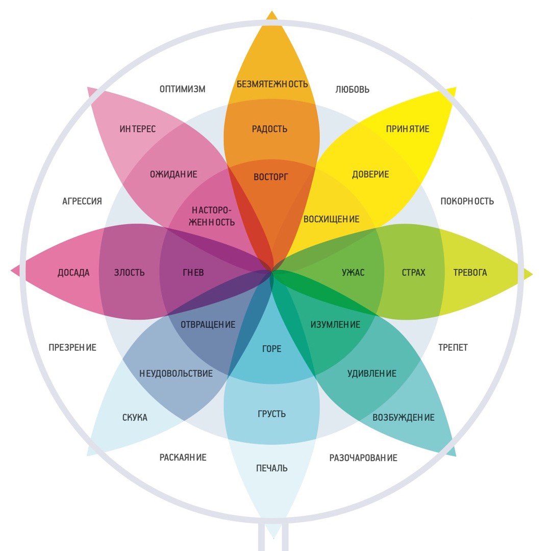 Теперь вспомните какое-нибудь событие, которое вызвало у вас сильную эмоциональную реакцию. Попробуйте определить, какие эмоции вы испытали. Опирайтесь на свои мысли и желания. Попытайтесь найти эмоции на модели Плутчика (см. картинку) и определить их интенсивность.