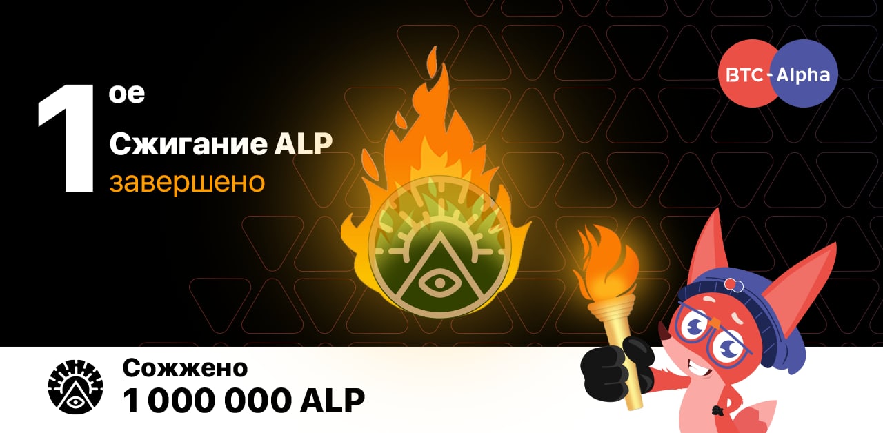 BTC-Alpha сожгла 1 000 000 ALP, операция сжигания произошла в блоке 1225156. Количество сожженных токенов включает всю активность в спотовой торговле внутри площадки BTC-Alpha.