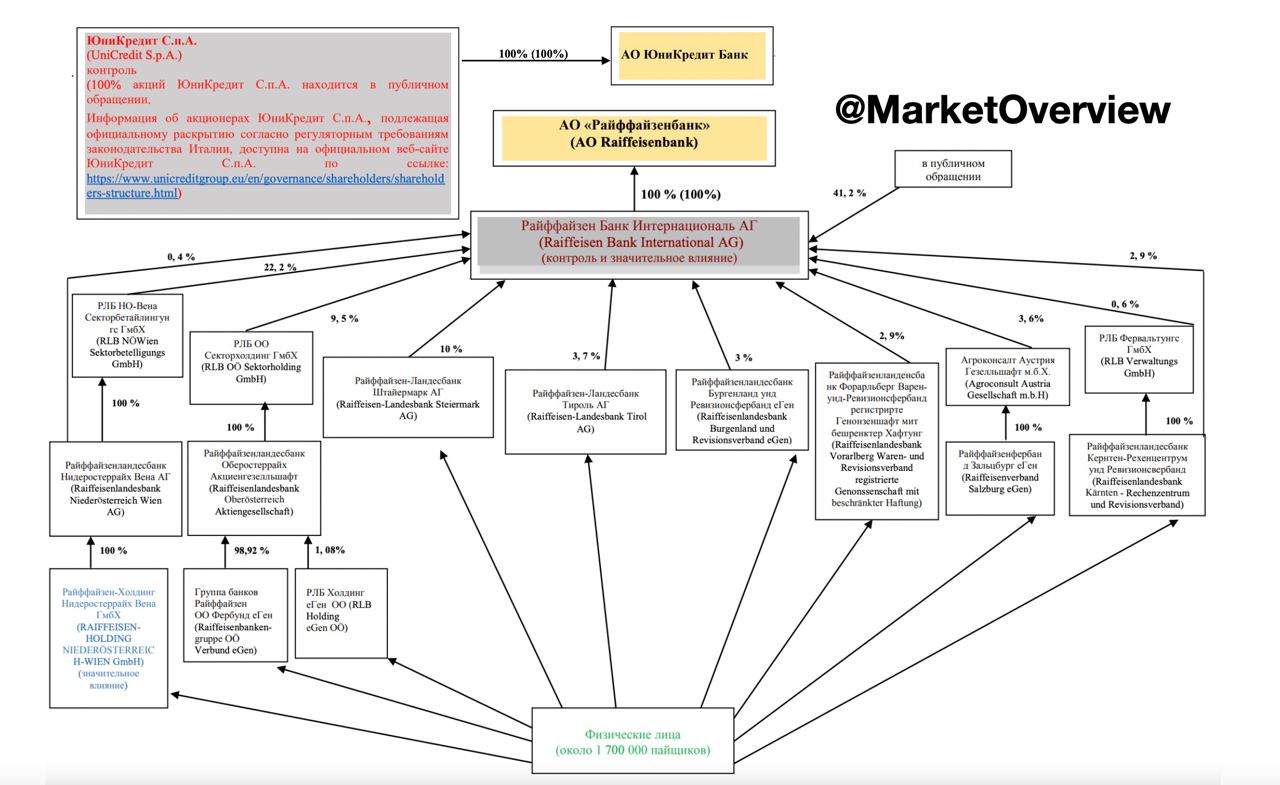 ▪️Представитель управляющей компании Swedbank Robur (доли в Raiffeisen и UniCredit не раскрыты) заявил, что любая спекуляция на продолжающихся событиях неприемлема и не соответствует нашему видению на ответственные инвестиции. Swedbank Robur обеспокоен репутационными рисками.