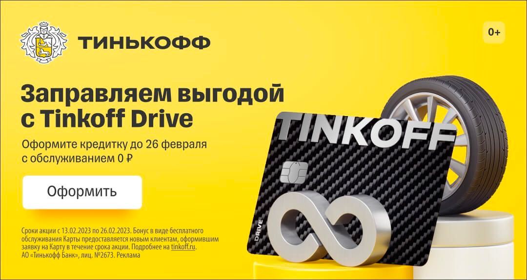 До 26 февраля в Тинькофф банке можно оформить кредитную карту Tinkoff Drive с вечным бесплатным обслуживанием -