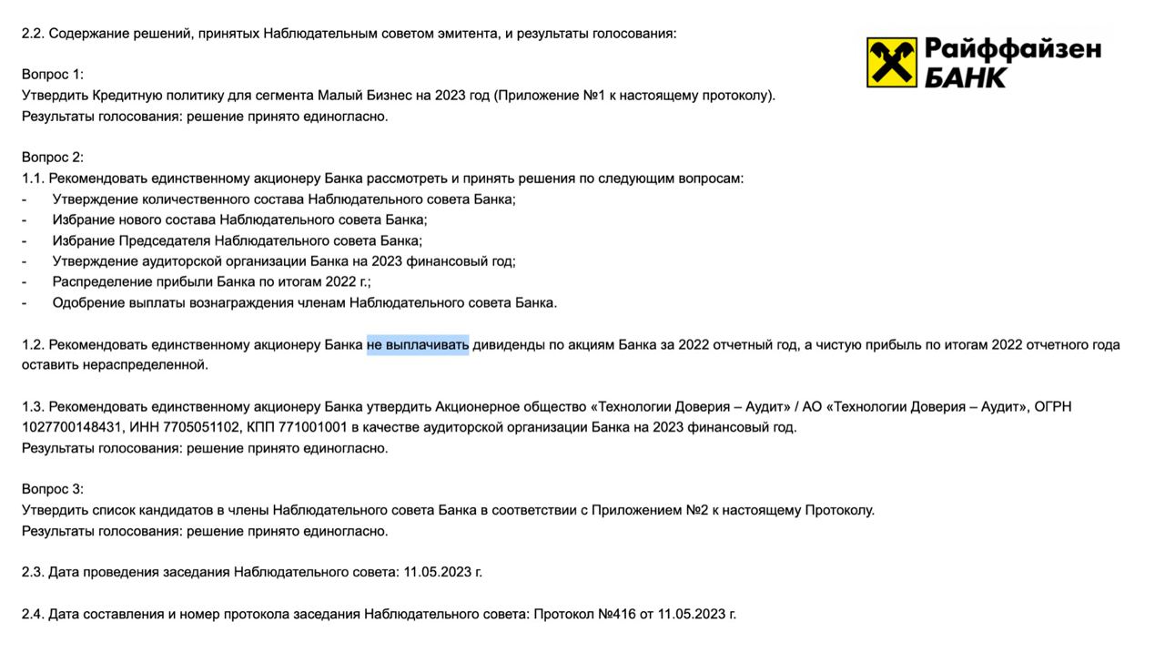 За 2022 года российский Райф заработал €2,05 млрд чистой прибыли - это в 4,4 раза больше, чем за 2021 год (€474 млн). Выплата дивидендов компанией с иностранным собственником из недружественной страны (RBI Австрия) была бы заморожена на счетах «С», с которых можно только платить налоги или покупать ОФЗ. Чтобы перевести дивиденды иностранному акционеру, требуется специальное разрешение Правительственной комиссии. Но даже получив его, Райф не смог бы перевести больше 50% от чистой прибыли за 2021 год (~€237 млн) и был бы обязан сохранить деятельность в России.