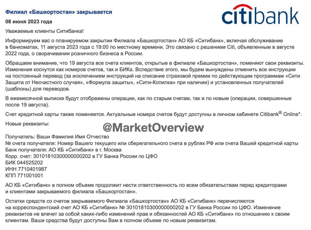 🔻Ситибанк закрывает филиал «Башкортостан»