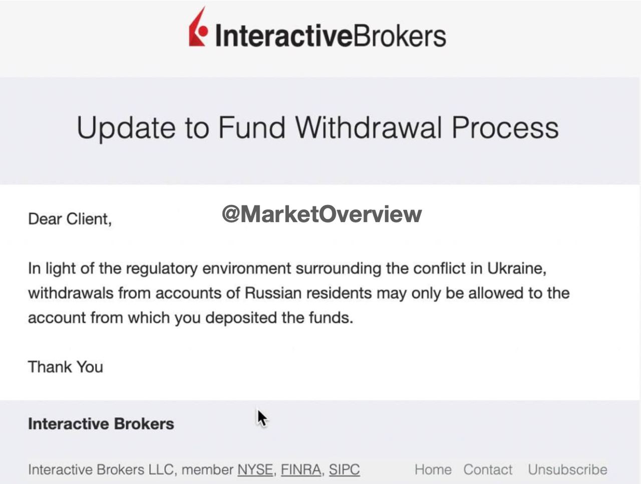 Вчера вечером самый популярный иностранный брокер у россиян Interactive Brokers стал массово отправлять клиентам информационное сообщение: