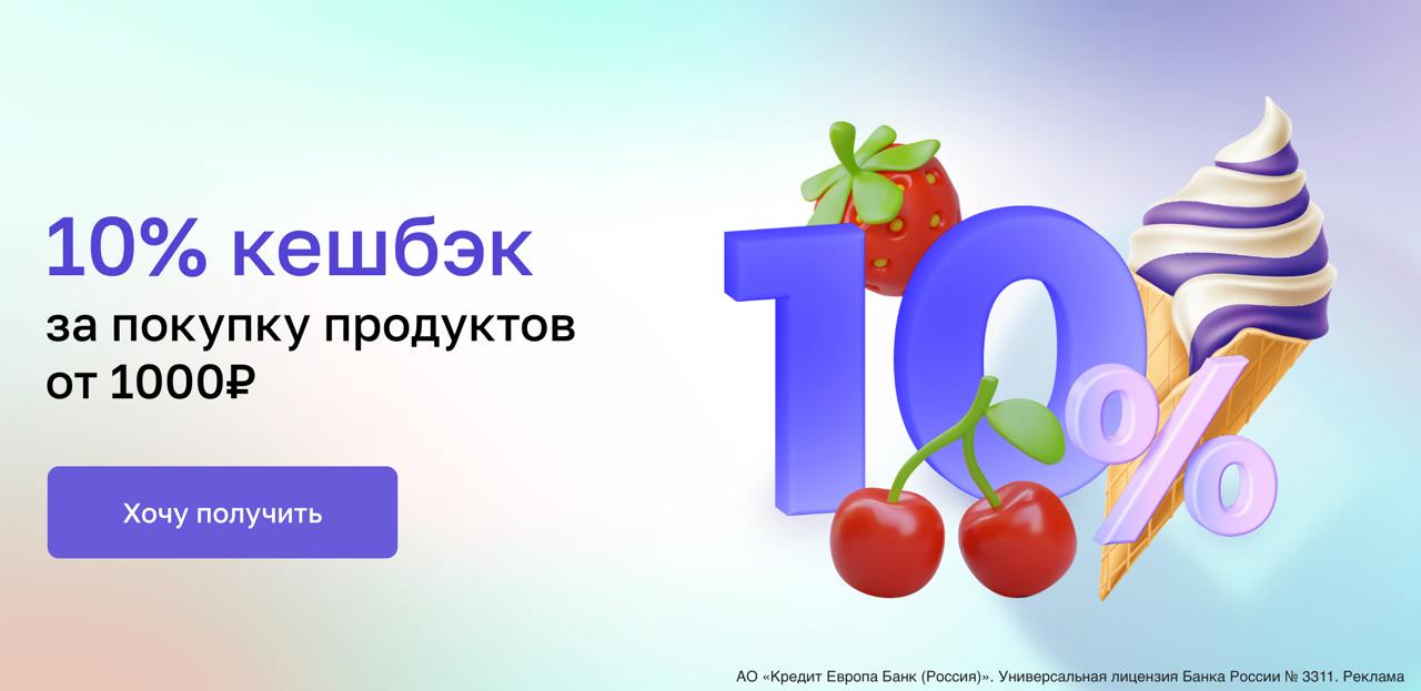 Кредит Европа Банк продолжает радовать регулярными акциями, в которых "осыпает" клиентов дополнительными кэшбеками, помимо основного. С 01.07.24 по 02.09.24 по кредитной карте Urban Card начисляется моментальный кэшбек 10% за покупки от 1000 руб в супермаркетах. Условия: