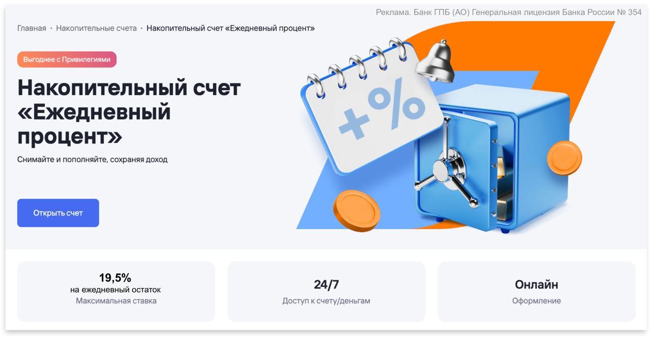 💳 Уже сегодня в Газпромбанке накопительный счёт со ставкой 19,5% на ежедневный остаток