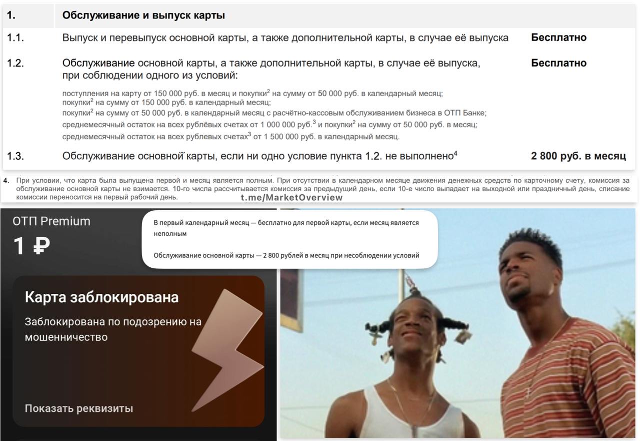 Заблокировали только премиальную карту, у клиента есть действующий накопительный счет и еще 3 действующие карты банка: 2 дебетовых и 1 кредитка - всё работает. Другие клиенты подтверждают, что при подключении Premium-пакета сотрудники ОТП просят в первый неполный месяц некие критерии. Честно, как бывший банковский сотрудник, я всегда иду на встречу, если персональный менеджер неформально просит меня сделать какие-то действия для его KPI: для меня не сложно, ему приятно. В прошлом часто оказывался в таких ситуациях, когда для зачёта пакета просил сделать клиента покупку или подержать денег до конца месяца, но не гадил тем, кто отказывался, да и функционала "блокировать" неугодных не было.