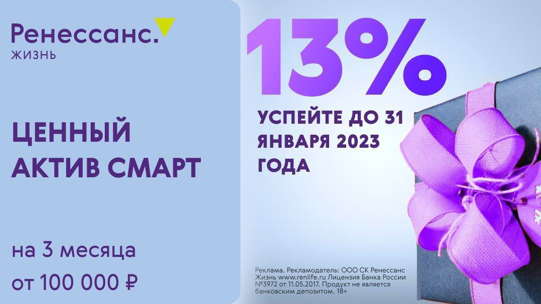 Итак, с сегодняшнего дня Ренессанс Жизнь поднял ставку по флагманскому продукту Ценный актив Смарт с 10% до 13% годовых. Если вы ищите варианты выгодно разместиться, то это отличный вариант на короткий срок - вкратце: