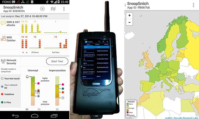 بهم وللمساعدة في اكتشاف التهديدات المحتملة مثل صائدي IMSI (المعروفين أيضًا باسم "stingrays") وهجمات شبكات الهاتف المحمول الأخرى.