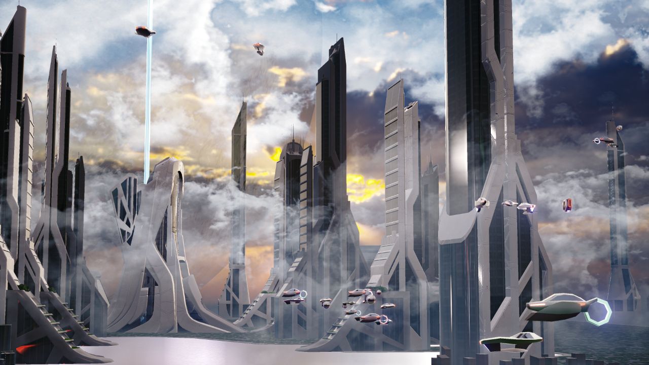 Resplendent Infrastructure. Futuristic Flying Cabs. Hyper-realistic Living World.